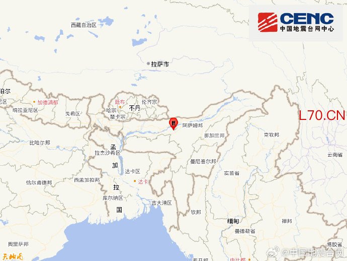 西藏林芝市墨脱县发生3.3级地震 震源深度10千米