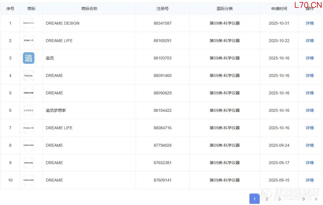 根据企业信息平台数据显示,追觅此次申请的“科学仪器”类商标涵盖“追觅梦想家”“DREAME DESIGN”“DREAME”等多种样式,目前多数处于“申请中”状态。近90枚的申请量,绝非简单的“点到为止”,更像是企业在为未来的业务版图“圈地”。