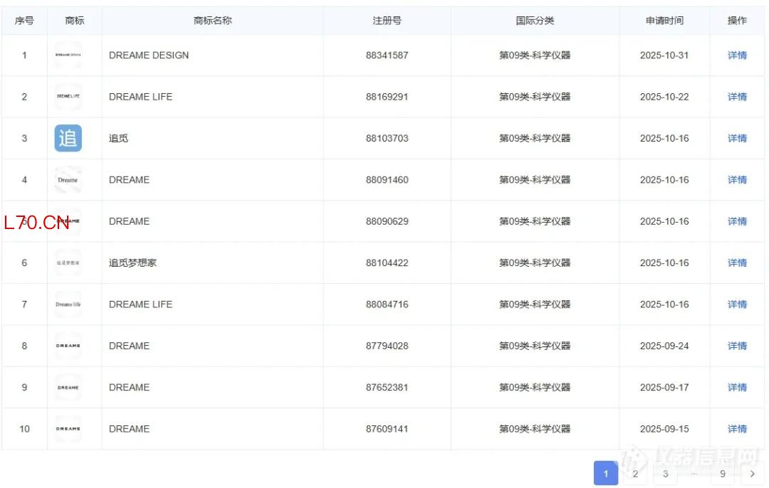 根据企业信息平台数据显示,追觅此次申请的“科学仪器”类商标涵盖“追觅梦想家”“DREAME DESIGN”“DREAME”等多种样式,目前多数处于“申请中”状态。近90枚的申请量,绝非简单的“点到为止”,更像是企业在为未来的业务版图“圈地”。